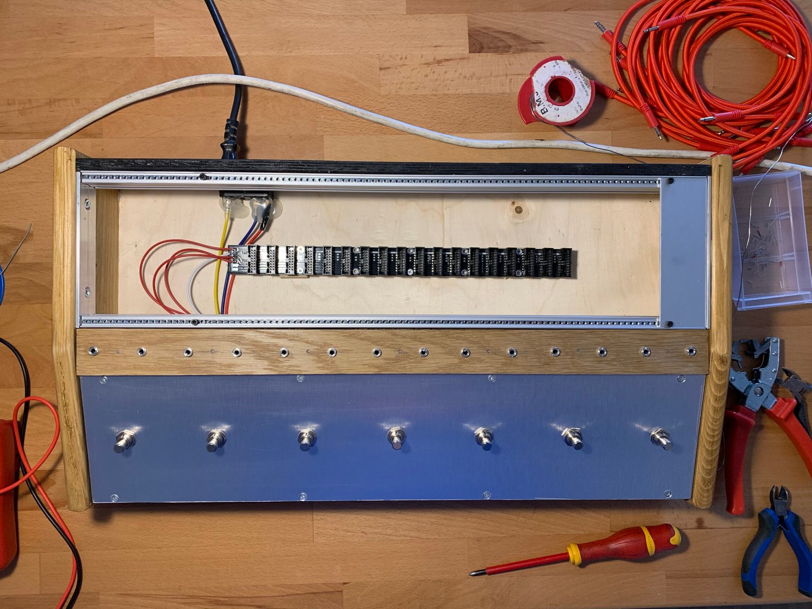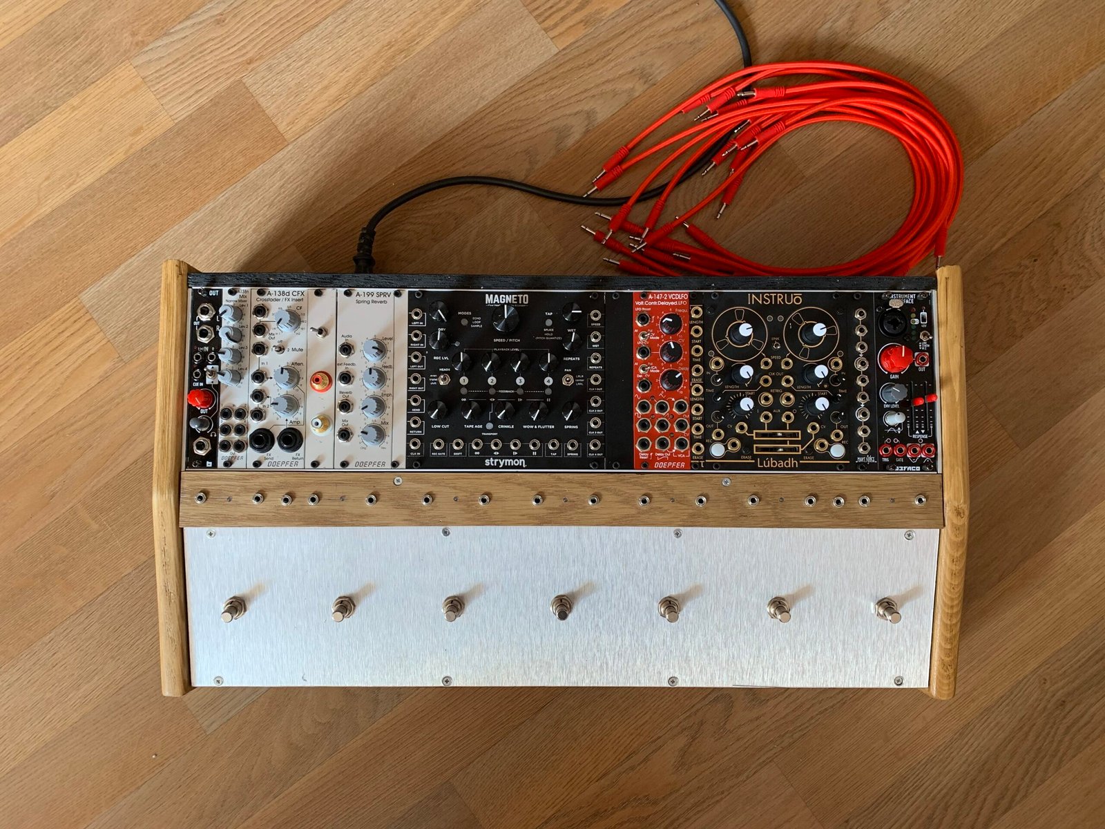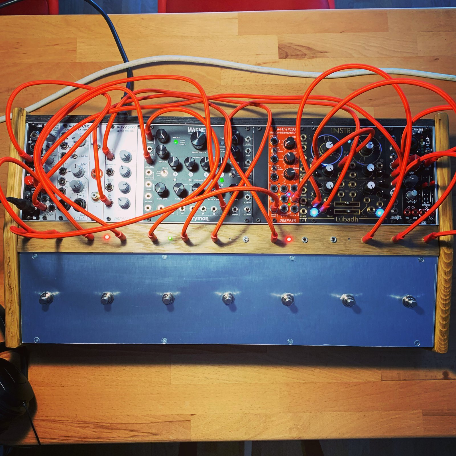 Ce pédalier a été développé par Antoine Laloux (OBI RIDDIM) comme un outil de performance personnalisable, pensé pour les musiciens électroniques cherchant un contrôle physique direct sur leur système modulaire.